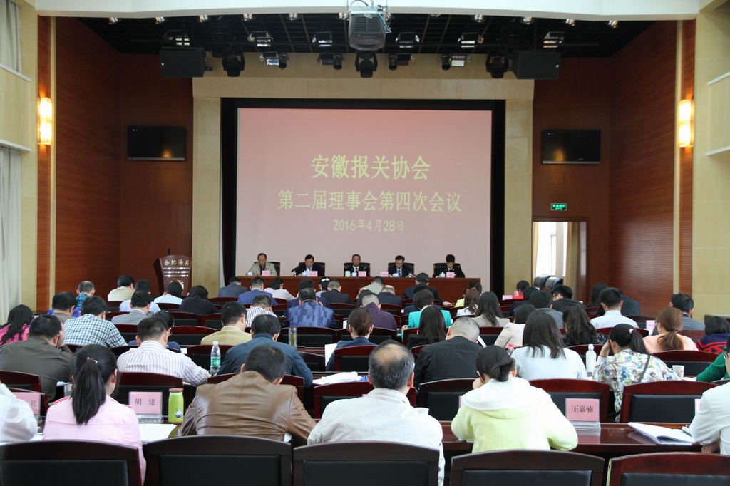4月28日,安徽报关协会在合肥召开第二届理事会第四次会议。合肥海关党组书记、关长肖力委托巡视员贾江出席会议并作重要讲话,充分肯定安徽报关协会2015年及第二届三次理事会议以来主动适应行业协会改革脱钩形势,加强自身思想、能力和作风纪律建设,保持队伍稳定,迎难而上,积极配合区域通关一体化改革,竭诚为会员企业服务等所做的工作和取得的成绩;提出要“更加准确地认识和把握当前报关协会工作面临的形势、树立做好协会工作和建设发展信心,进一步加强协会自身建设、继续做好服务会员工作,加强政策法规宣传和报关技能培训,深入开展报关行业调研,认真做好报关协会脱钩转型的有关政策规定的宣传解读工作,推进报关行业自律与诚信建设”等项要求。