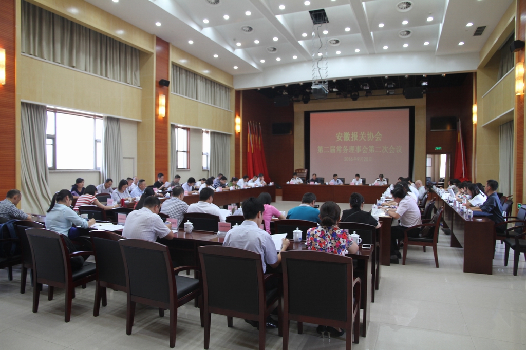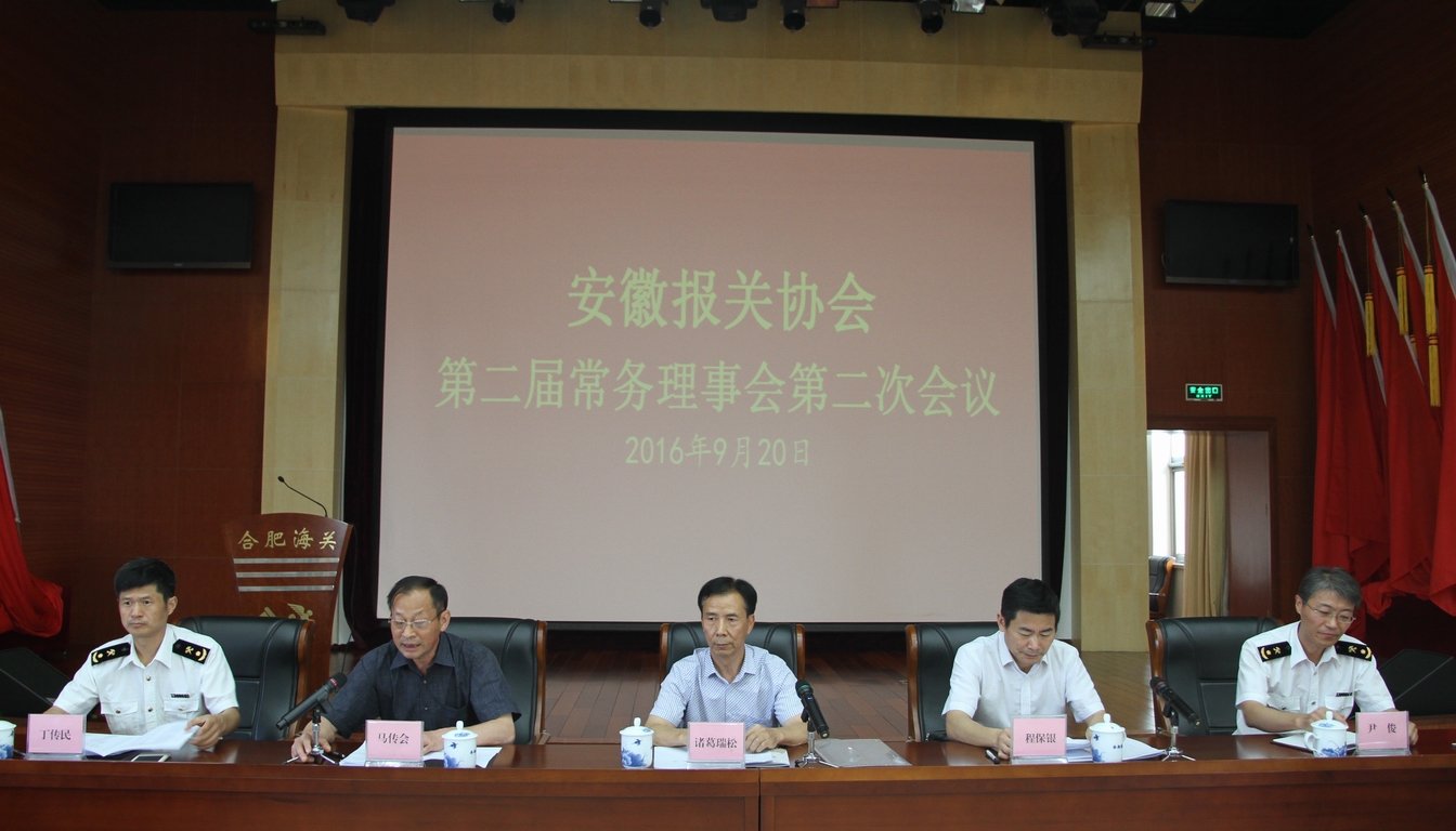 9月20日,安徽报关协会在合肥召开第二届常务理事会第二次会议。会议由副会长兼秘书长马传会主持,合肥海关人事教育处、稽查(企管)处主要负责人应邀到会,51家常务理事以上单位共41人参加了会议;协会9名特邀联络员列席会议。