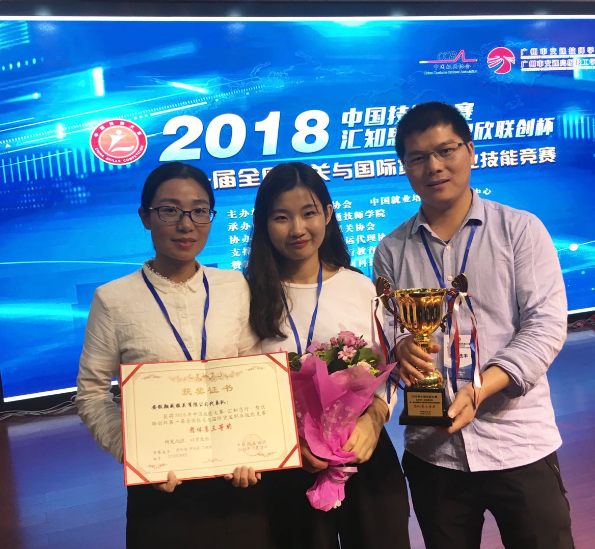 此次全国报关与国际货运职业技能竞赛是经国家人社部核准认可的竞赛项目,是全国技能大赛的一部分,并且是贯彻落实十九大精神、倡导劳动者光荣、弘扬“工匠精神”的具体体现。此项竞赛由中国报关协会、中国就业培训技术指导中心主办,得到全国各地报关协会和报关企业(单位)、院校的积极响应。全国共有5000多人报名、2000余人参加初赛,经过激烈竞争,261人从中脱颖而出,其中155人晋级进入职工组决赛、106名在校学生进入个人决赛;上海、江苏、广东深圳、山东、安徽等地共10个职工团体队取得决赛资格,其中安徽翔威报关有限公司的俞有强、李知诺、苏婷婷3人组成的团体队进入决赛第八名。
