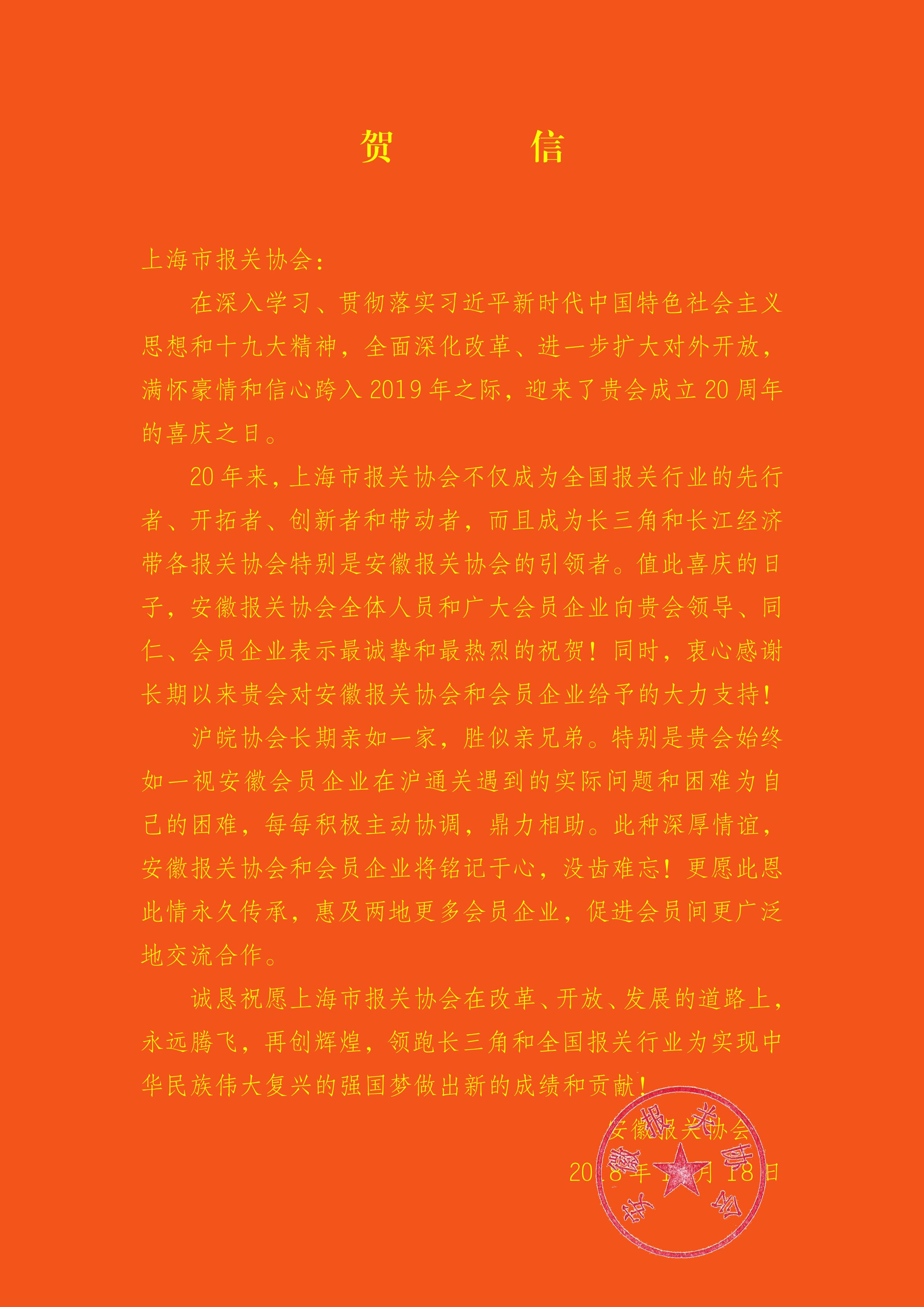 此前,我会还专门向上海市报关协会发去了贺信,以此增进友谊,密切联系,增强“四互”扩大协作配合。