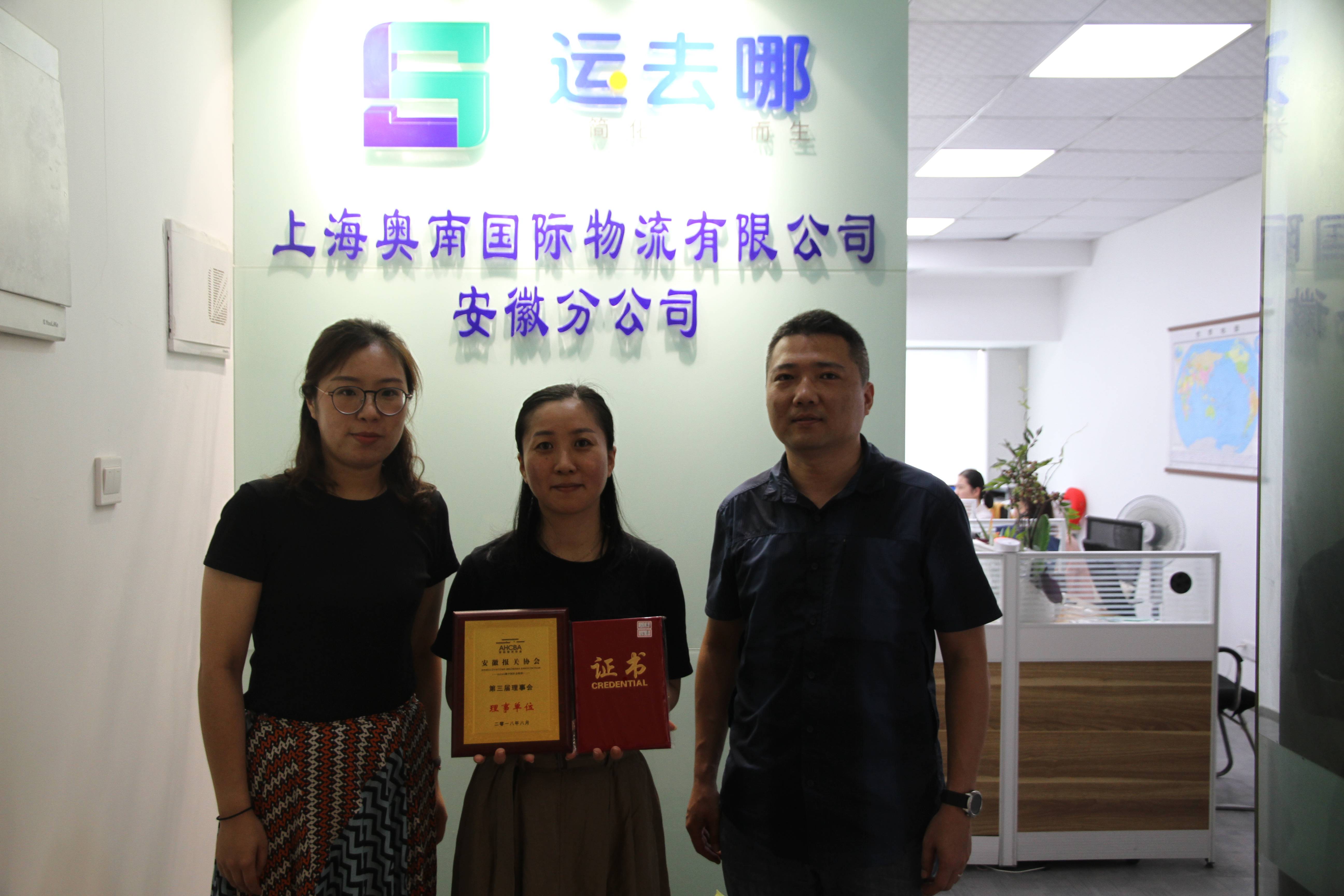 最后,王冠华秘书长和孙静主任共同代表安徽报关协会为奥南公司安徽分公司授予了理事证书和牌匾。