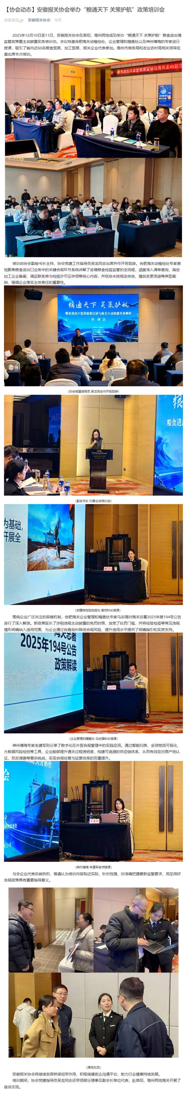 安徽报关协会举办“粮通天下 关策护航”政策培训会