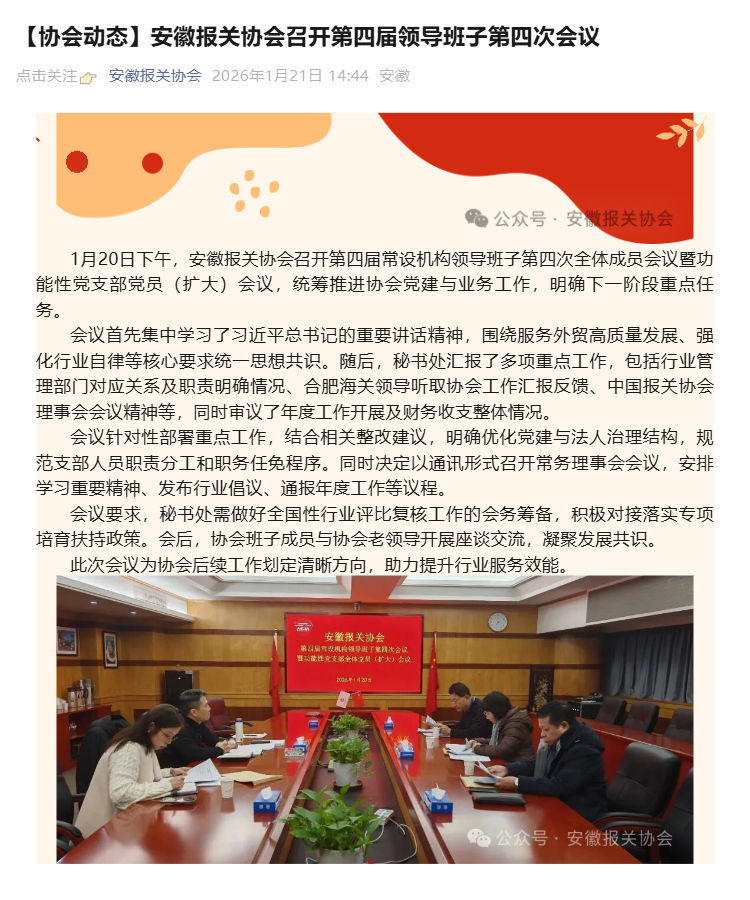 安徽报关协会召开四届四次领导班子会议