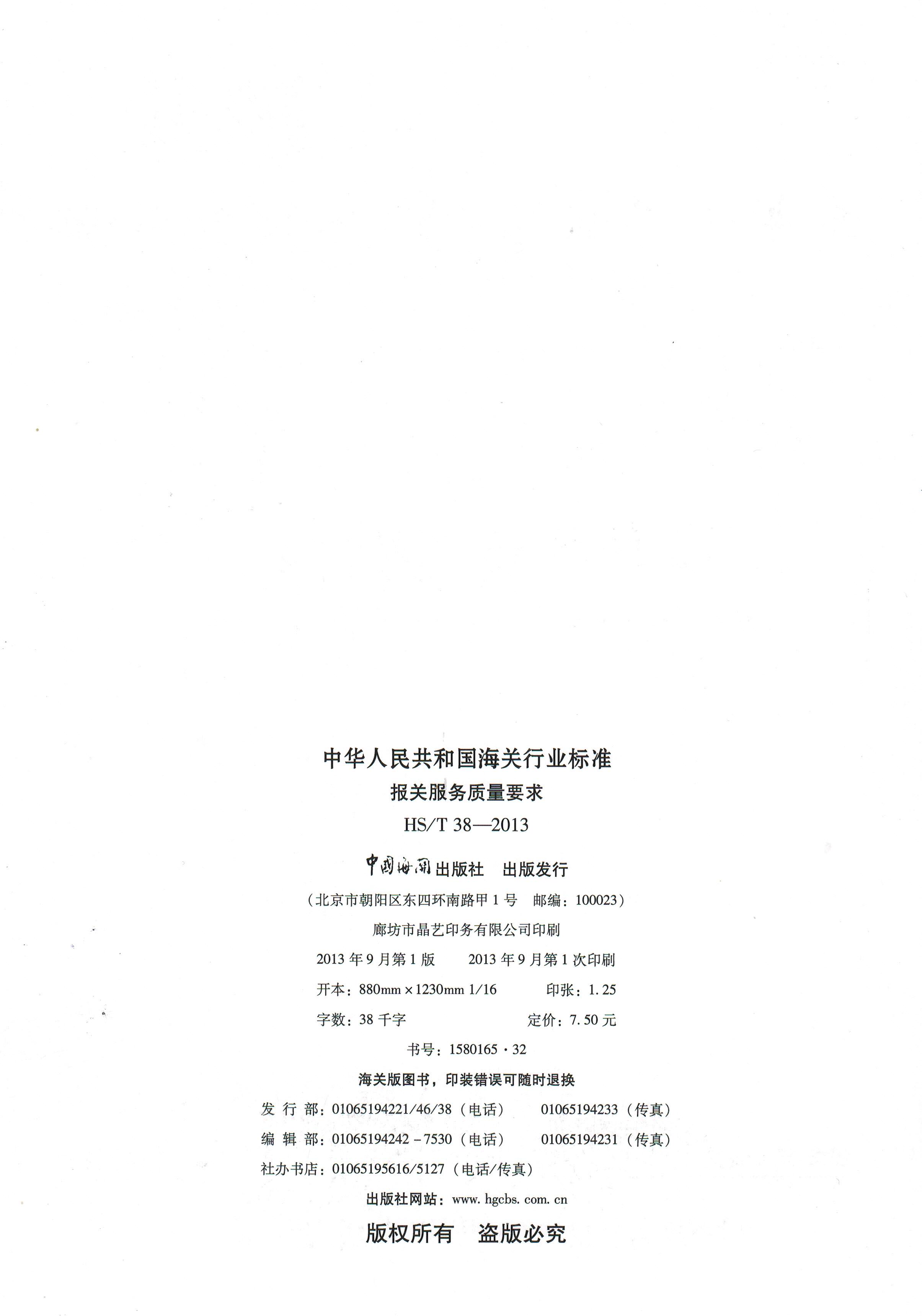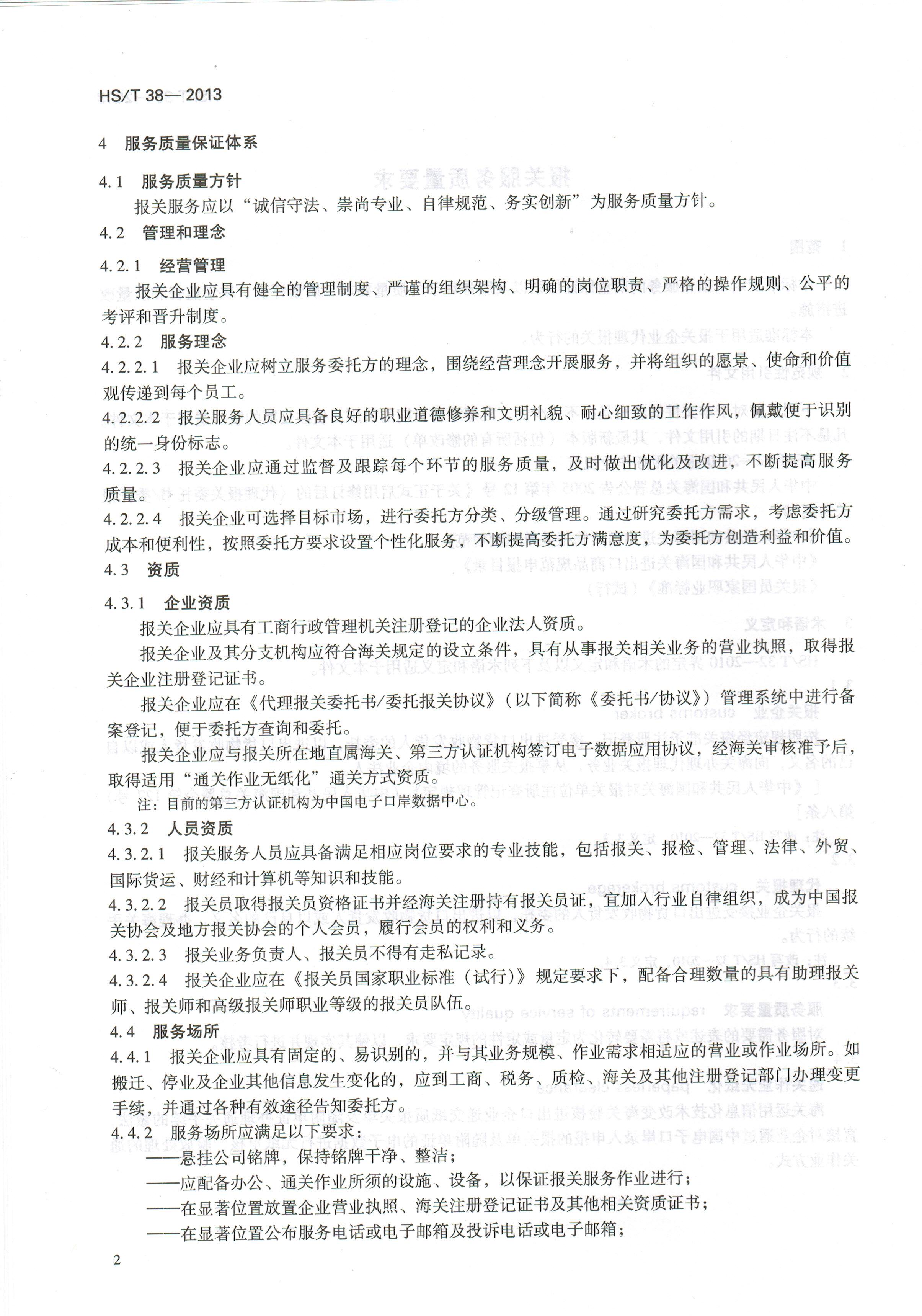 中华人民共和国海关行业标准--报关服务质量要求
