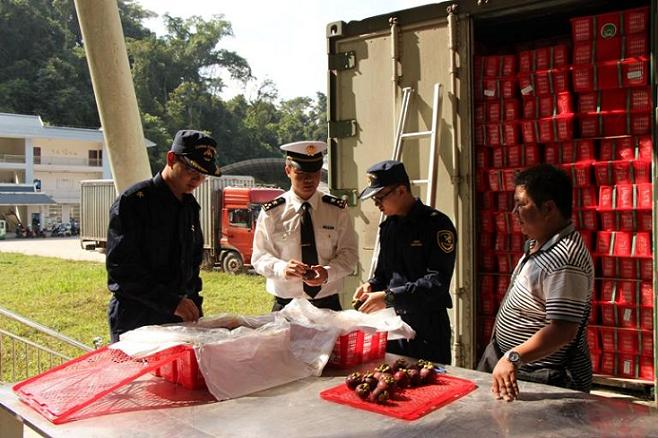 自从勐腊海关为产于东盟的新鲜果蔬产品开辟“绿色通道”,实行优先查验、优先放行以来,这类易腐货物的通关速度就更快了。“这大大降低了我们企业的物流成本,今天早上由泰国经磨憨口岸进来的山竹,晚上就可以摆在昆明的水果市场货架上了!”红星公司的小杨高兴地说。