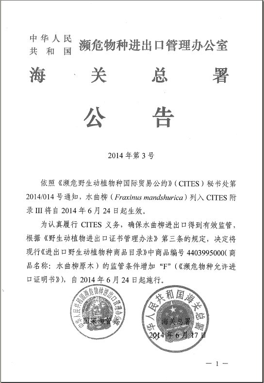 海关总署、濒危物种进口管理办公室联合公告