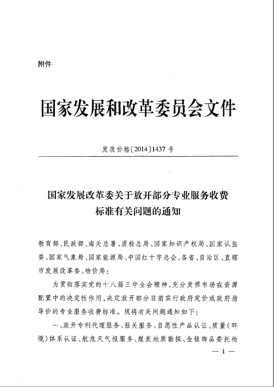 国家发展改革委关于放开部分专业服务收费标准有关问题的通知