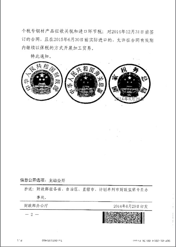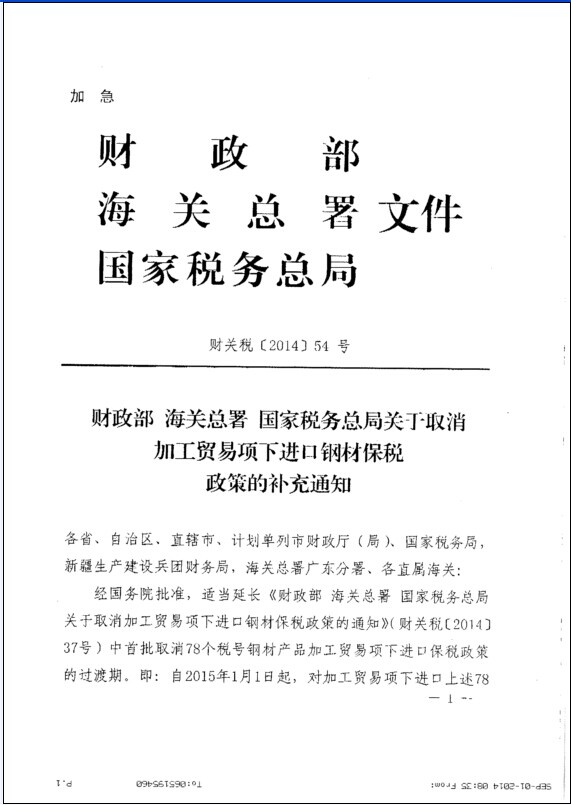 海关总署、财政部、国家税务总局联合公告2014年第54号