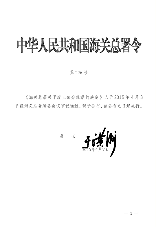 海关总署226号令(海关总署关于废止部分规章的决定)
