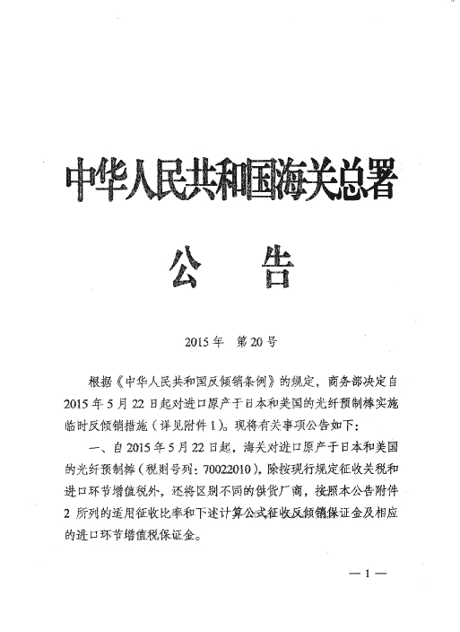 海关总署2015年第20号公告