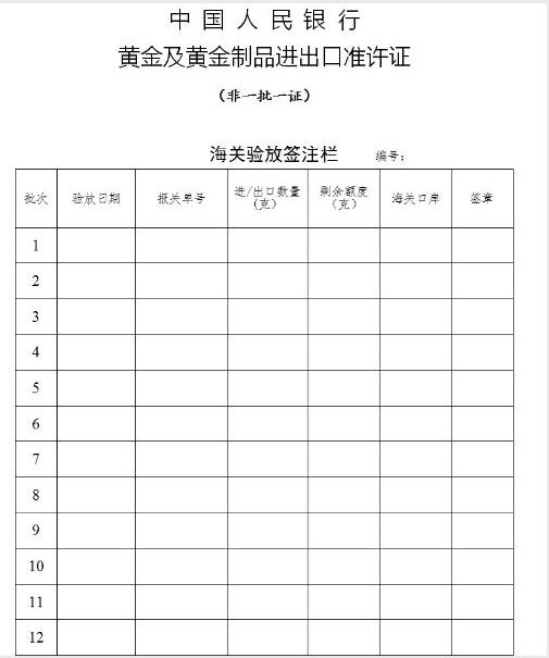 七、实行“非一批一证”《准许证》管理试点后,中国人民银行及其分支机构将对核发的《准许证》使用情况加强监督管理。“非一批一证”《准许证》的被许可人,应在“非一批一证”《准许证》有效期满后10个工作日内将黄金及黄金制品进出口情况(包括批次、验放日期、实际进出口数量等)报送中国人民银行及其分支机构。
