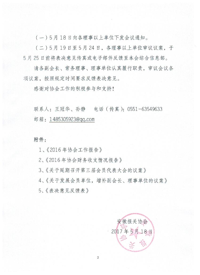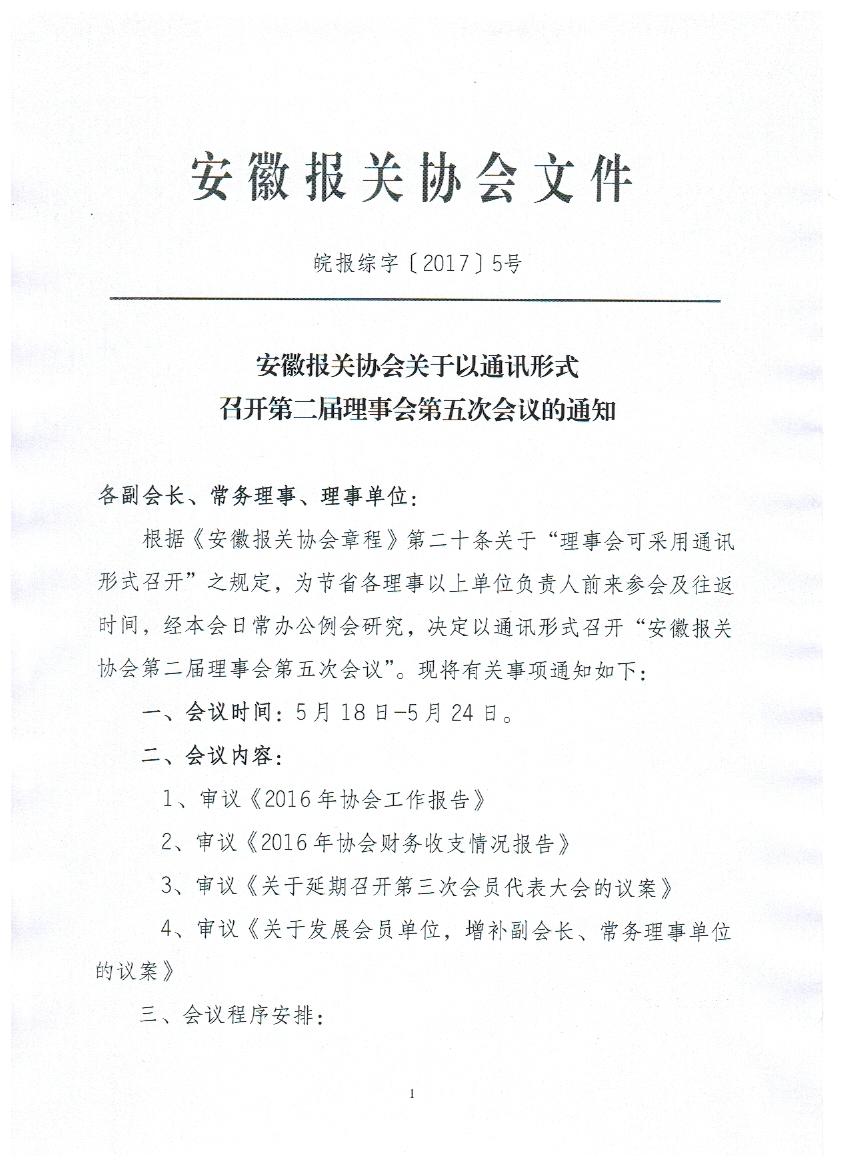 以通讯形式召开二届五次理事会的通知